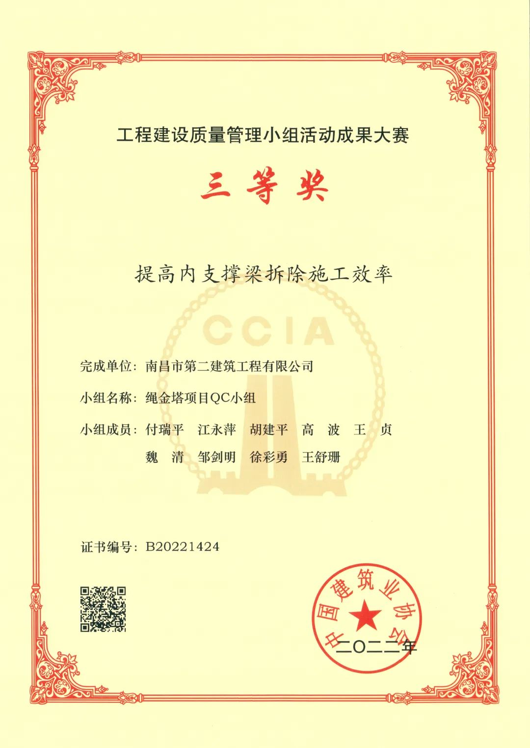 近日,公司繩金塔項目QC小組在2022年全國工程建設質(zhì)量管理小組活動(dòng)成果大賽評選中榮獲三等獎。