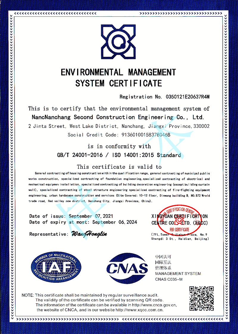 環(huán)境管理體系認證證書(shū)